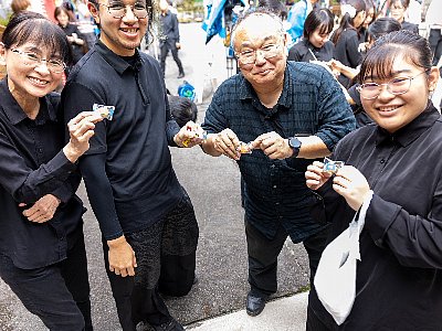 そしてイベントの大人気の《景品付き飴投げ》! なんと、私たちのメンバーの中からも4人が景品をゲットしました☆彡 |